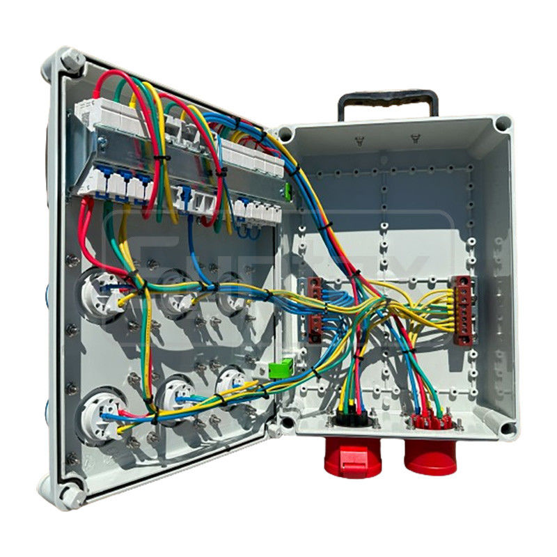 32 AMPの壁掛け配送板はPC素材で作られ,入口は3相32Aで,MCBとRCDの保護があります.また,電力の状態をチェックするための3つのモジュール型インジケーター32AMPの出力ソケットがループされ, 6ノ 3P 16A 220Vのソケットは3ノ 3P 16AのMCBによって保護されています. すべての電源配送ボードは注文に構築されています.