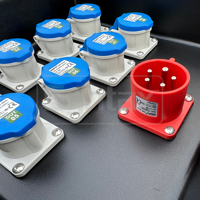 この3相400Ampのポータブルステージボードは,カタールのステージ一時電源ボックスに特別にカスタマイズされています. 32A 5P 400v IP44入口は4P 32A MCBによって保護されています.出口ソケットは8ノ 3P 16A 220v IP44 CEEソケットは8ノ 1P 16A MCBによって保護されています顧客はWeipuのブランドを指定した 産業用プラグとソケット,およびシュナイダーのすべてのブレーカー.スポーツイベントにぴったりです 特に水泳の試合にはオーダーメイドの 配送ボックスを作れます
