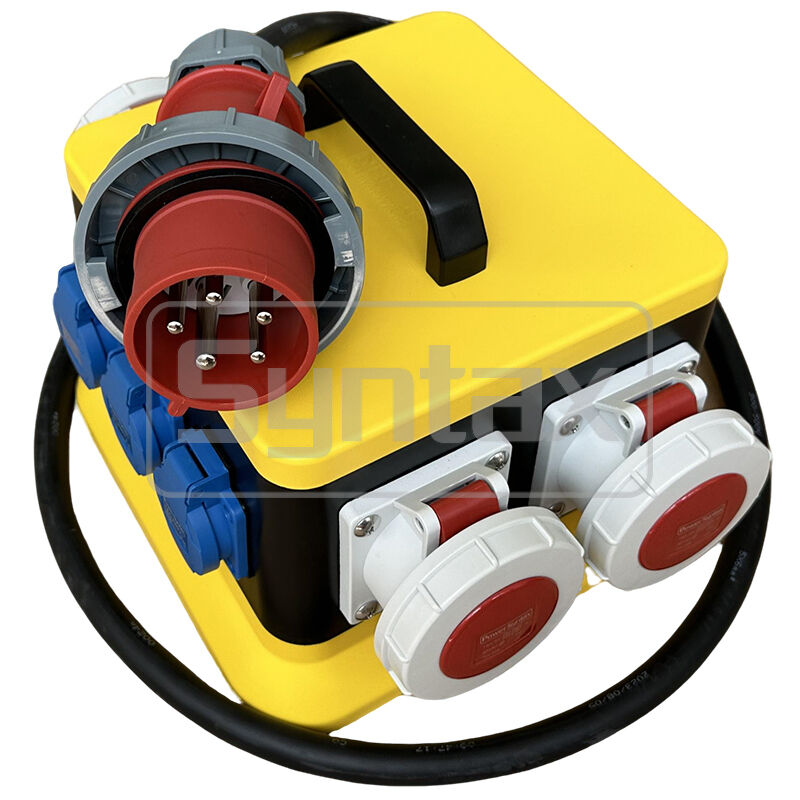 Syntax MZ8 IP67 防水ポータブル配電盤 32A/5P 三相 400v 1.8m 内蔵リードゴムケーブル 屋外 26*26*24.5CM