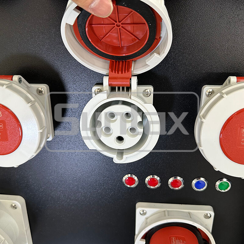 | 出力 7-12 | 6 × 3P 32A 220V IP67 パネルマウントソケット、6 × 1P+N 32A 30mA RCBO で保護 |