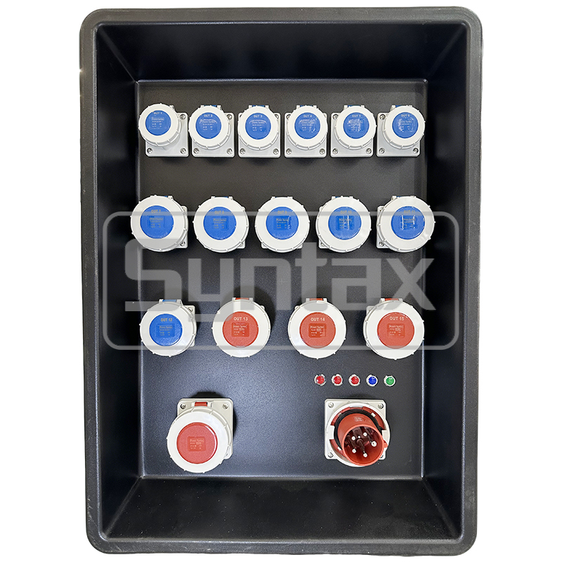 | 出力 13-15 | 3 × 5P 32A 400V IP67 パネルマウントソケット、3 × 4P 32A MCB + 3 × 4P 40A 30mA RCD で保護 |