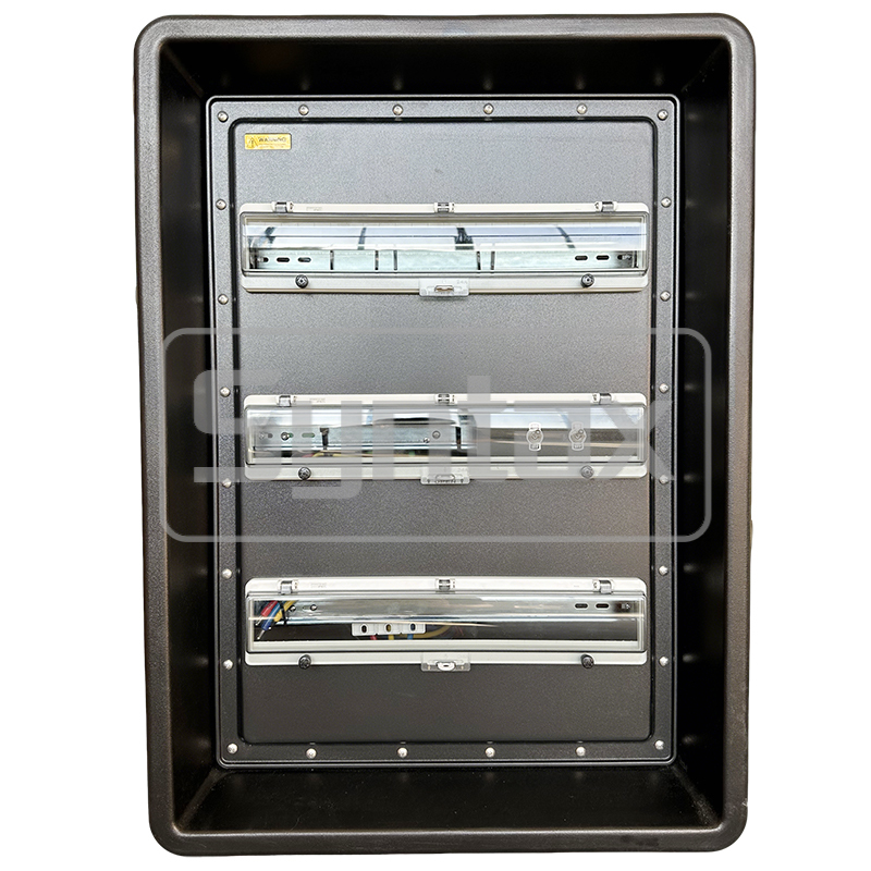 | 出発する1〜6 | 6×3P 16A 220V IP67 パネルマウントソケット, 6×1P+N 16A 30mA RCBO で保護 |