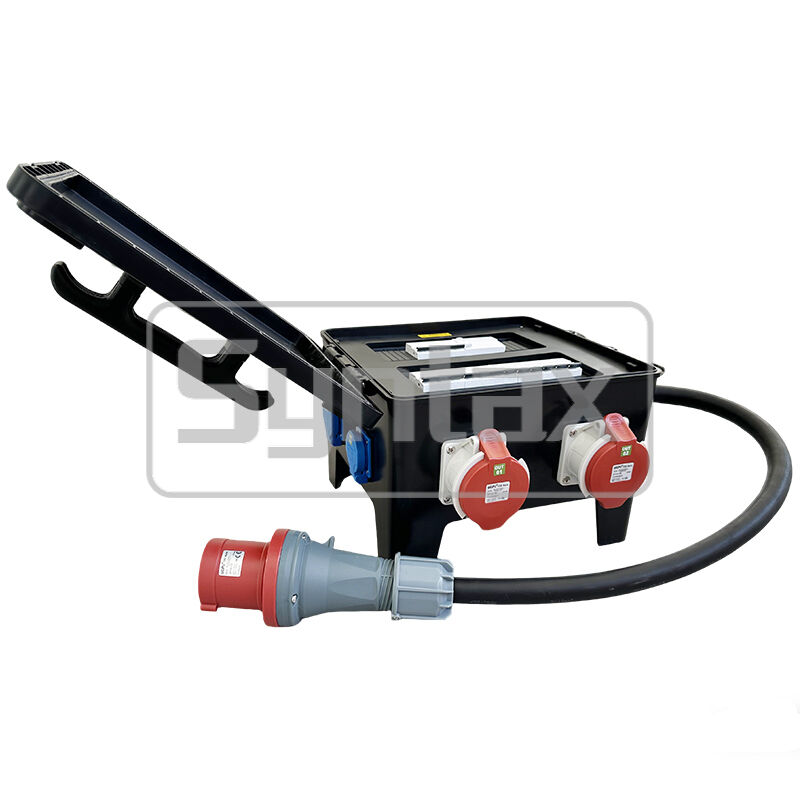 Syntax MP24 IP67 防水ポータブル配電ユニット 63A/5P、1.2m ラバーケーブル、Schneider RCCB 保護付き