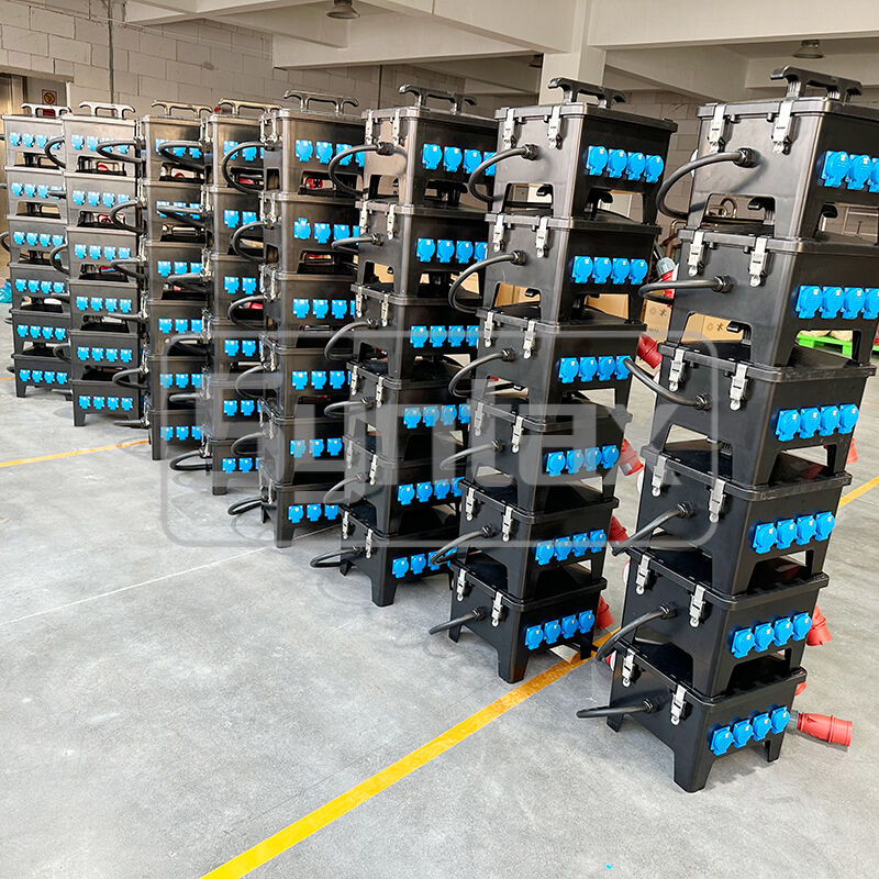 このCEE標準の携帯電源配送ボードは,ライブイベント,スポーツイベント,映画&テレビで使用するために, 63 AMP, 400VAC, IP44 防水格付けされています.入力は 63A / 5P 400V IP44プラグです.2mの柔軟な5x10mm2のゴムケーブル4P 63A 30mA RCD の保護により,出口ソケット1-2は,2nos 32A/5P 400v IP44パネルに搭載されたソケットで,2nos 3P 32A MCB によって保護されています.そして,出口ソケット3-8は6ノース16A/2P+E 220vIP44シューコソケット 6ノース1P16AMCBによって保護されています産業用プラグとソケットは,有名なブランドWeipuによって作られ,ブレーカーは有名なブランドSchneiderによって作られています.舞台にぴったりですオーダーメイドの電源配送箱を作れます